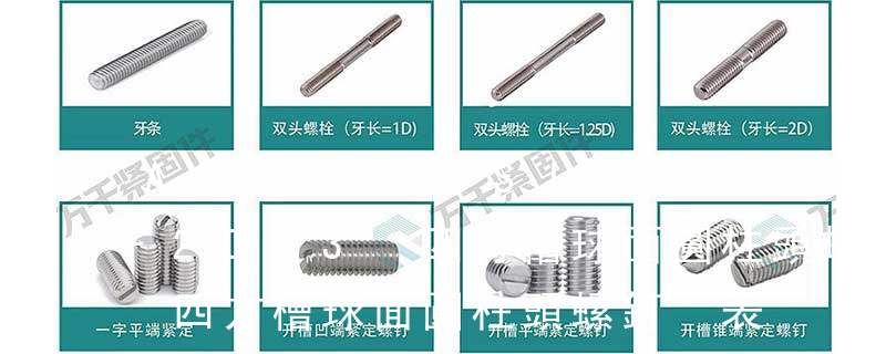 1)開槽普通螺釘多用于較小零件的連接。它有盤頭螺釘、圓柱頭螺釘、半沉頭螺釘和沉頭螺釘。盤頭螺釘和圓柱頭螺釘的釘頭強度較高,瑁在普通的部件連接上;半沉頭螺釘的頭部呈弧形,安裝后它的頂端略外露,且美觀光滑,一般