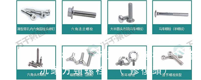 六角頭頭部帶孔螺栓 A 和 B級 GB 32.1-88 六角頭頭部帶孔螺栓 細桿 B級 GB 32.2-88 六角頭頭部帶孔螺栓 細牙 A 和 B 級 GB 32.3-88 下方頭螺栓 B級 GB 35-88 T 形槽用螺栓 GB 37-88 加強半圓頭方頸螺栓 GB eye bolt 吊環螺栓(也叫環首螺栓, 其實這個叫法很多,大概是不同地區的緣故)Piston bolt 活塞螺釘 Winding bolt 線圈螺釘 Hexagon head bolts 六角頭螺栓 Hexagon flange bolts 六角法蘭螺栓 Carriage bolt 馬車螺栓 Square