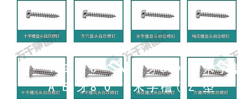 head (oval槽型 :1.一字2.內三角3.內角四方4.十字5.米字6.花形7.梅花形8.花形一字9.特形10.內六角 十字槽盤頭組合機絲牙螺釘 采用的是GB818 Cross recessed pan head Combination screws十字槽盤頭機絲牙螺釘 自切自攻螺釘有以下幾種型式:十字槽盤頭自切自攻螺釘,十字槽沉頭自切自攻螺釘。十字槽半沉頭自切自攻螺釘,六角頭自切自攻螺釘。3、自擠自攻螺釘(自攻鎖緊螺釘)自擠自攻螺釘的螺紋一般為機螺紋,很少采用自攻螺紋。在扳擰