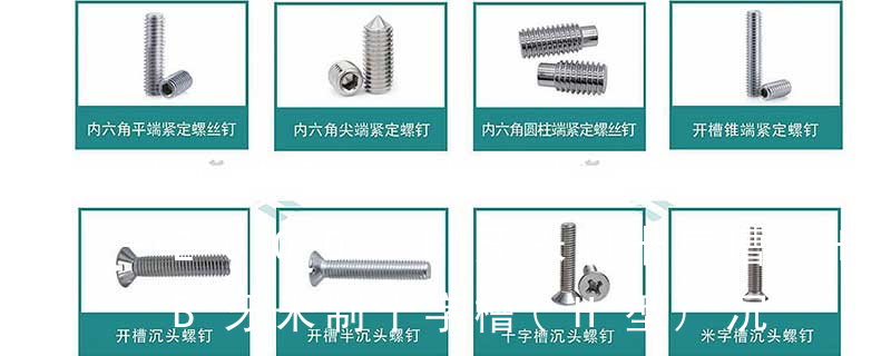扳擰方式是指安裝和緊固螺釘時扭轉螺釘頭部的方式?;痉椒ㄓ袃煞N:外扳和內扳。一般而言,外扳擰的扭矩大于任何形式的內扳擰(內槽)。外扳擰:六角,六角法蘭面,六角凸緣,六角花形等;內扳擰:一字槽,十字槽H型, 1)開槽普通螺釘多用于較小零件的連接。它有盤頭螺釘、圓柱頭螺釘、半沉頭螺釘和沉頭螺釘。盤頭螺釘和圓柱頭螺釘的釘頭強度較高,瑁在普通的部件連接上;半沉頭螺釘的頭部呈弧形,安裝后它的頂端略外露,且美觀光滑,一般用